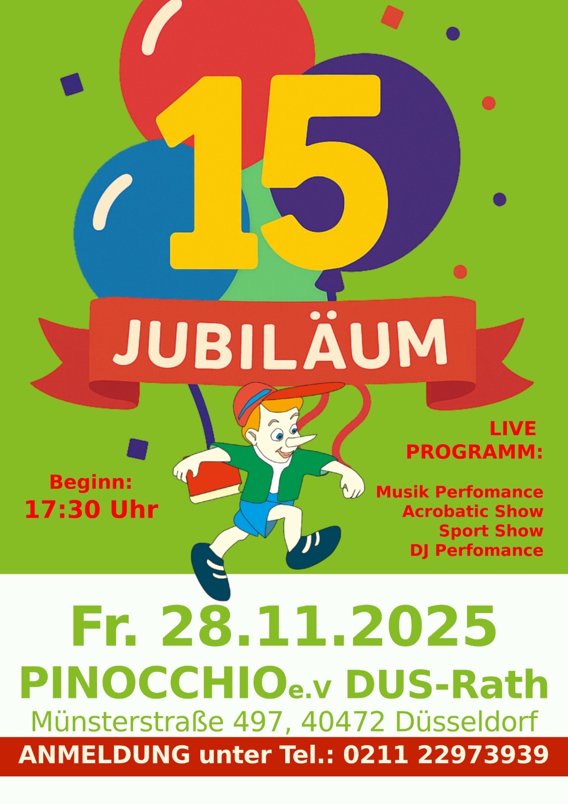 Seit über zehn Jahren ist Pinocchio e.V. ein verlässlicher Partner der Landeshauptstadt Düsseldorf und engagiert sich aktiv für die kulturelle und geistige Förderung von Kindern, Jugendlichen und Erwachsenen in Bereichen der Bildung, Kunst, Kultur und Sport.